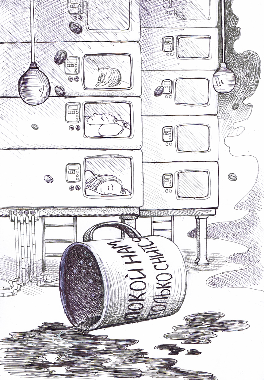 Маха не заставила себя уговаривать и бодро затопала к контейнеру с номером 18, по пути сунув ему в руку кружку с кофе. Для приёма вылупляющихся достаточно одного человека и нет ничего плохого в том, что мающийся без дела напарник как следует вздремнёт. А он своё ещё успеет наверстать. Возможность поспать в изолированной от мира капсуле с кондиционером выпадает каждую пару месяцев, а вот увидеть, как генеральный прокурор возвращает в лоно семьи беглую супругу - такое случается даже не каждый год, и он не мог позволить себе пропустить этой милой сценки. Интересно, почему ей-то дома не спалось?
