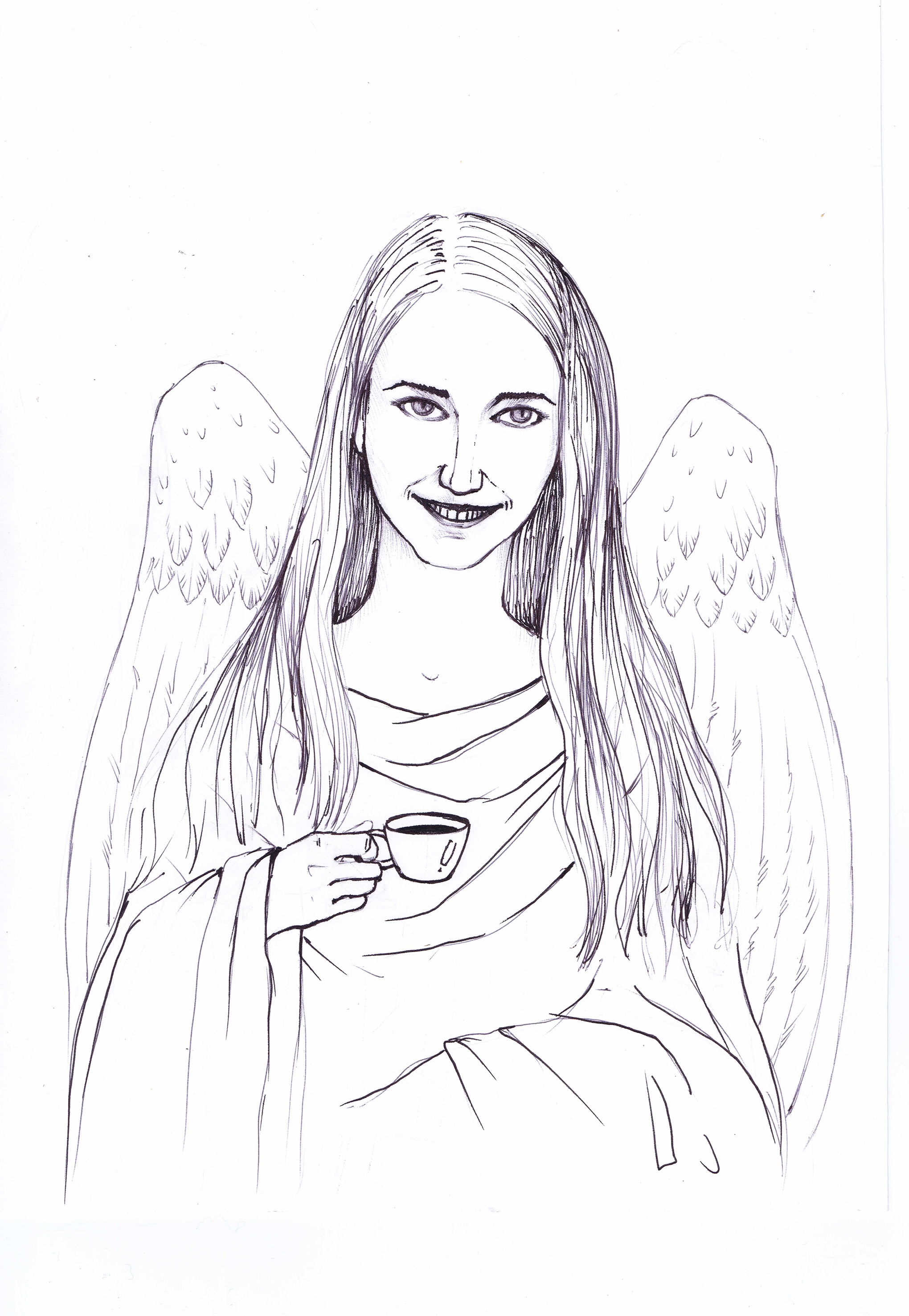 Муза не была сутулой. В коридоре она с явным наслаждением расправила крылья и легко воспарила, насколько позволял потолок. Плеснули края туники, той самой, что спросонья показалась простынёй, крыло легко коснулось щеки. Опускаясь на пол, она развернулась лицом к девушке, одарив её приветливой улыбкой.