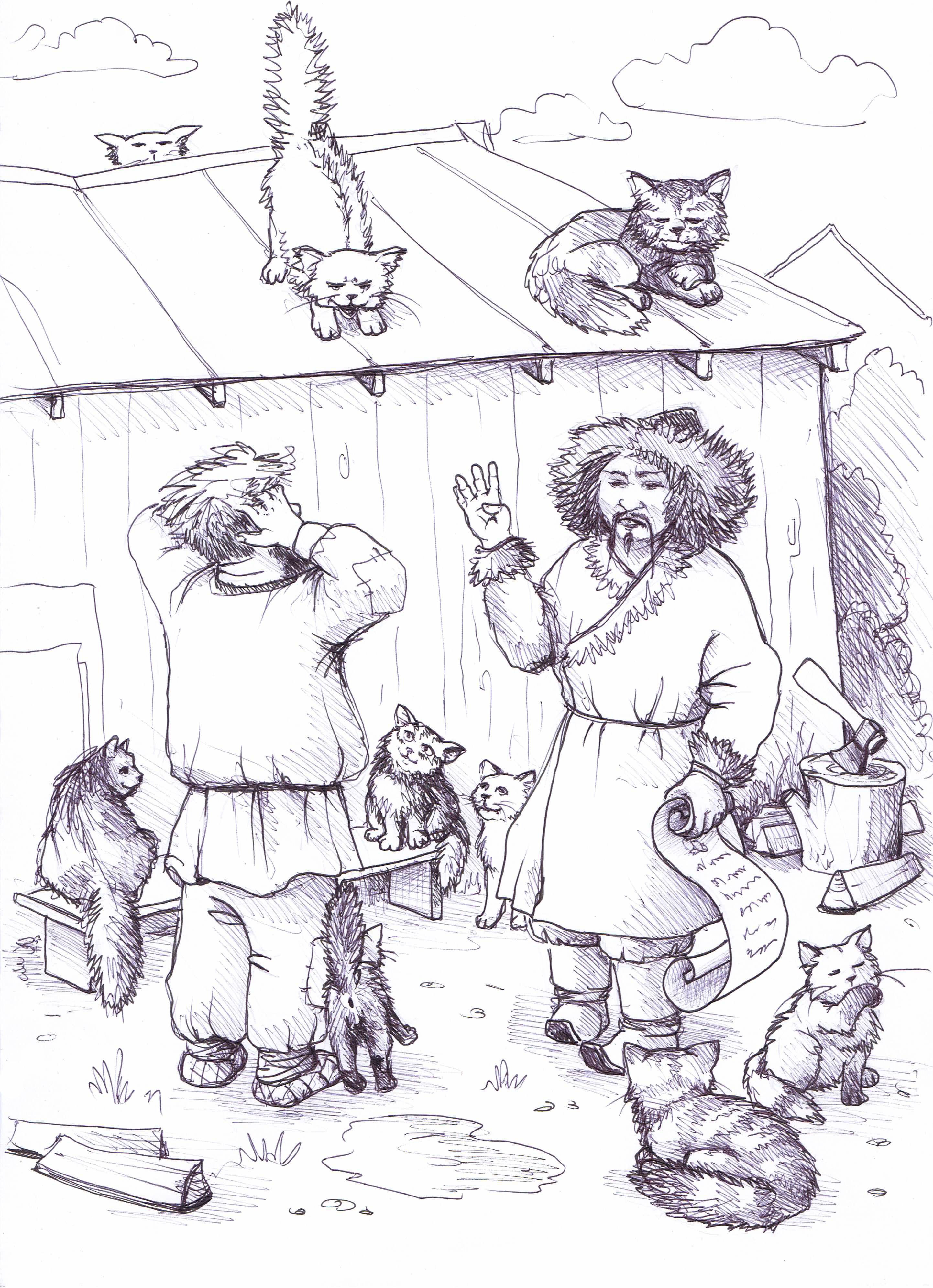 - Вся кот по списку есть. Только рыжая кот нет, - несмазанной телегой скрипел голос учётчика. - Наказать!