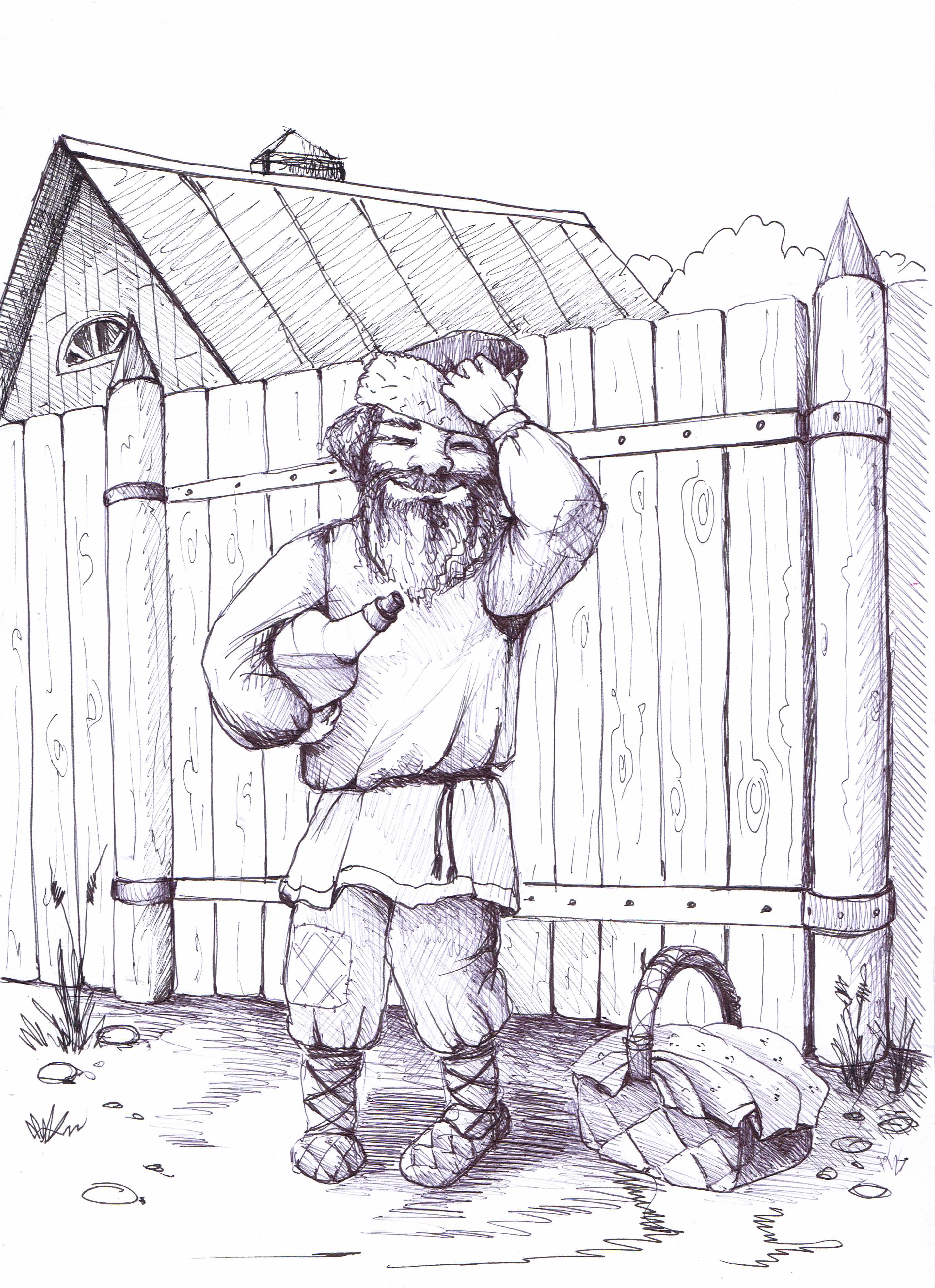 Клим одной рукой поднял корзинку, а другой схватил гостя за шиворот и, втащив в дом, силком усадил на скамью. Вынул из трясущихся рук бутыль, наполнил чарку и попытался влить в гостя, но тот сжал зубы и замотал башкой, расплескав половину на бороду.